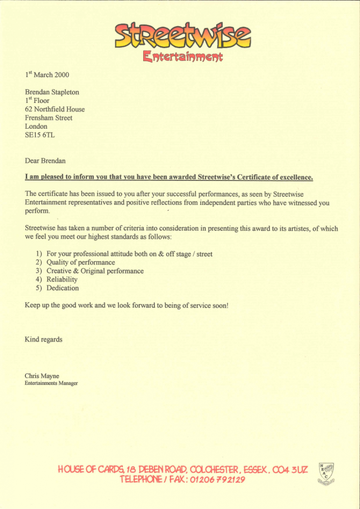 Credentials / Uncategorized / By heidless Certificates of Excellence Corporate Street Entertainment Channel 4 - Big Brother Karate Public Liability DBS - Page 1 DBS - Page 2
