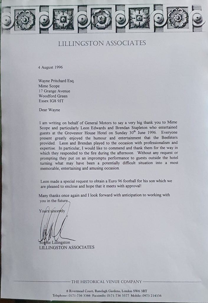 “In particular, I would like  to commend and thank them for the way in which they responded to the fire during the afternoon. Without any request or prompting they put on an impromptu performance to guests outside the hotel turning what may have been a potentially difficult situation into a most memorable, entertaining & amusing occasion.” – Sophie Lillington, LILLINGTON ASSOCIATES